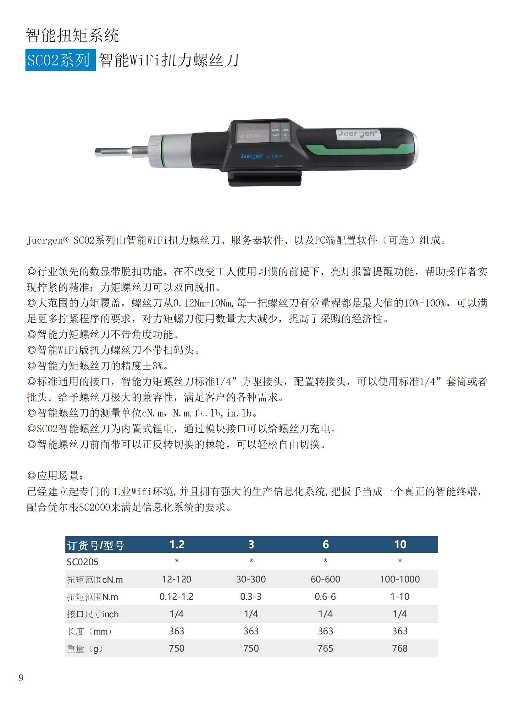 Juergen® SC02系列由智能WiFi扭力扳手、智能WiFi扭力螺丝刀、服务器软件、以及PC端配置软件(可选)组成。